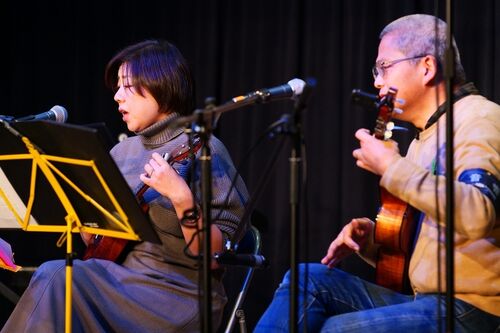 第二回目になりました、ウクレレ広場発表会を行いました。 当日はなごやかなうちに発表会が進みました。 最後にバイオリンが登場!結婚式以来です!というご夫婦の演奏。息の合った素敵な演奏を披露してくださいました。 バイオリンはウクレレと同じくらいの…